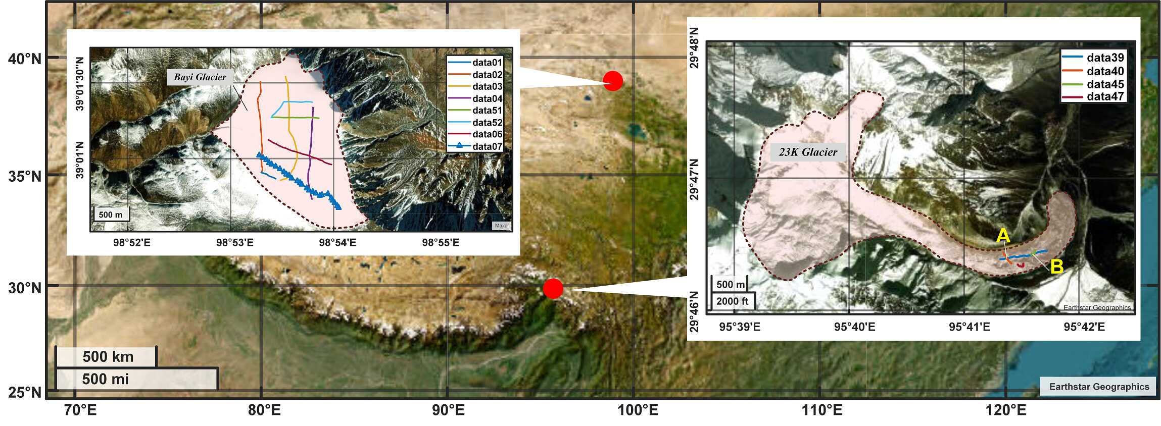 精密测量院影像大地测量学科组利用探地雷达(GPR)开展了青藏高原八一冰川和23k冰川厚度观测实验,针对GPR冰厚测量面临的富含水冰层严重干扰问题,提出了一种富含水冰川冰下地形雷达探测新方法,有效提取了富含水冰岩界面起伏特征,显著提升了高含水介质场景下冰下地形的精细化探测能力。近日,相关研究成果已发表在《IEEE地球科学与遥感汇刊》(IEEE Transactions on Geoscience and Remote Sensing)上。