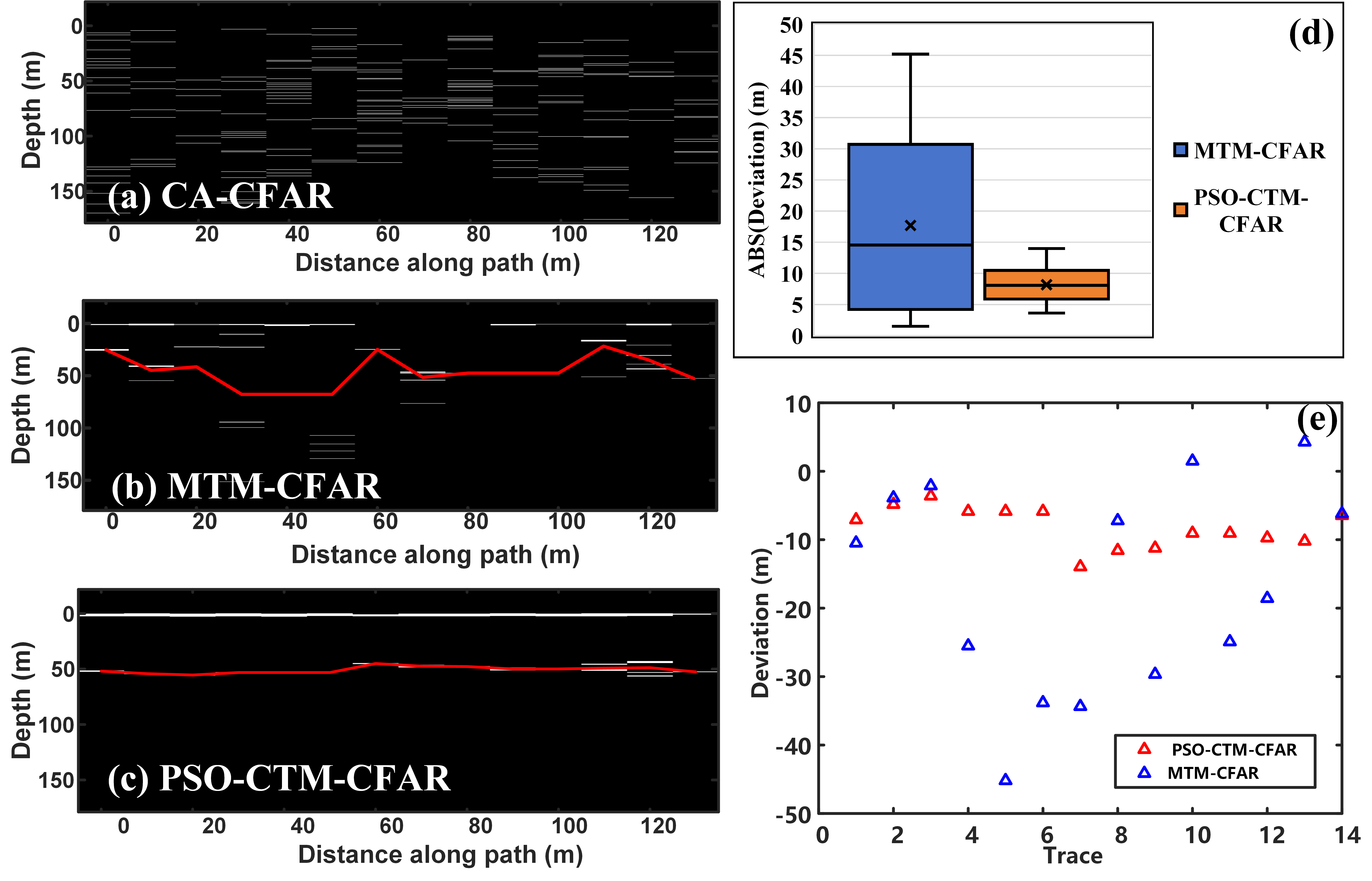 研究结果表明,与传统的图像增强方法和其他经典CFAR方法相比,PSO-CTM-CFAR方法使富含水冰川厚度测量误差降低约30%;在低信噪比条件下,测量误差降低约50%。此外,该研究首次获得了23k冰川部分地区的绝对厚度数据,解决了传统探地雷达技术难以探测富含水冰川冰岩界面的难题。